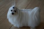 Beau has retired from the showring but is still looking good. He had numerous Best of Breeds. His father was Aust Ch Hazelwitch Sir Lawernce a beautiful Maltese used in advertising, to advertise the Maltese breed and the Maltese coat. Beau's brother from an earlier litter was Aust Grand Ch Hazelwitch Master Kozzie. Beau has a beautiful placid nature and is a perfect example of a Maltese.